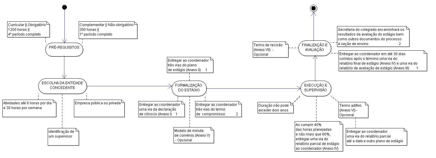 Abaixo há também um fluxograma com o resumo para formalização e acompanhamento do processo de estágio, para visualizar basta clicar sobre a imagem.